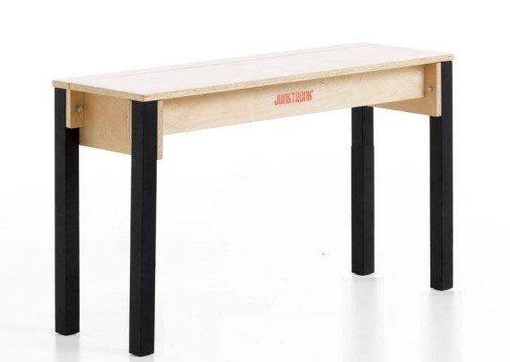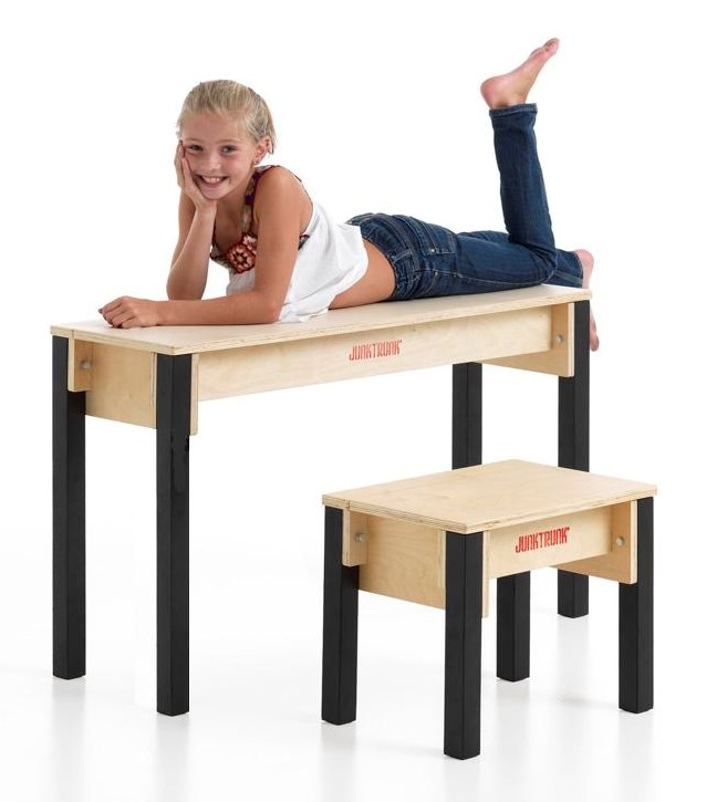 Stevig houten kinderbureau met klepdeksel. Onder de klep bevindt zich een opbergvak voor teken- en knutselspullen, speelgoed of bouwblokken. Het bureau wordt geleverd met een opbergbankje. Dit bankje heeft een opbergvak onder het zitgedeelte.